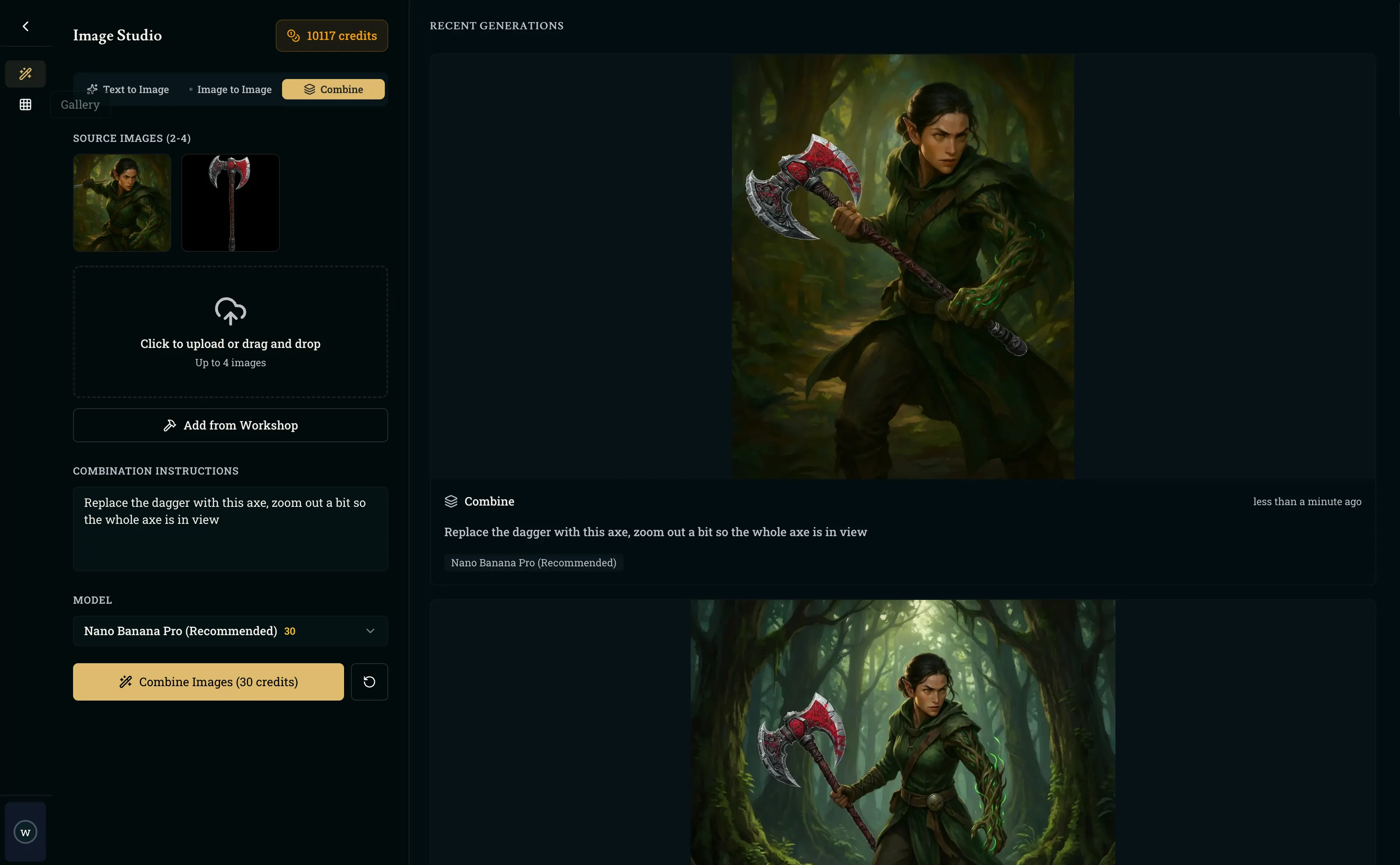 There are a variety of Flux-2 models, but we found Flux 2 Flash to be a great option to efficiently edit images. It’s great for simpler tasks, such as replacing hair color or adding a weapon, etc. In edit mode, it costs only 3 credits to use, making it the most affordable model for editing. We’ve also included Flux 2 Pro for when you need a little more fire power.