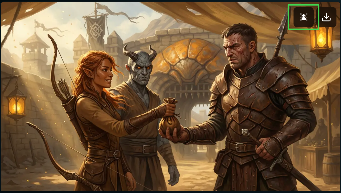 This feature is one we’ve been dreaming of since we first started working on Friends & Fables, and now the technology is finally good enough to bring it to you! You can now create realistic scene images of what’s currently happening in your campaign.